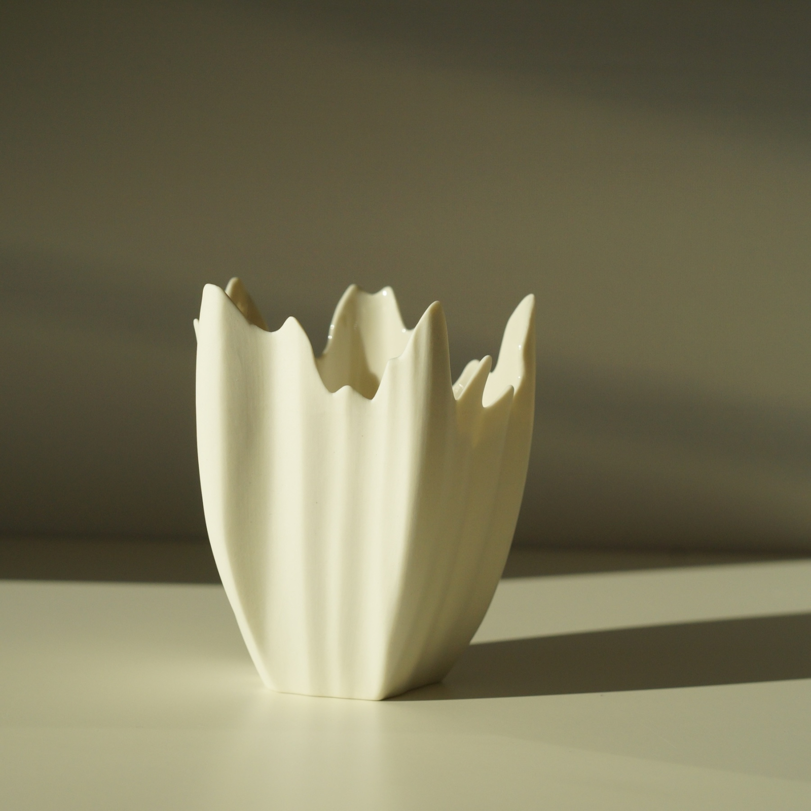 Aceasta tehnica istorica a fost reinterpretata pentru a modela forme florale organice in piese functionale din portelan.